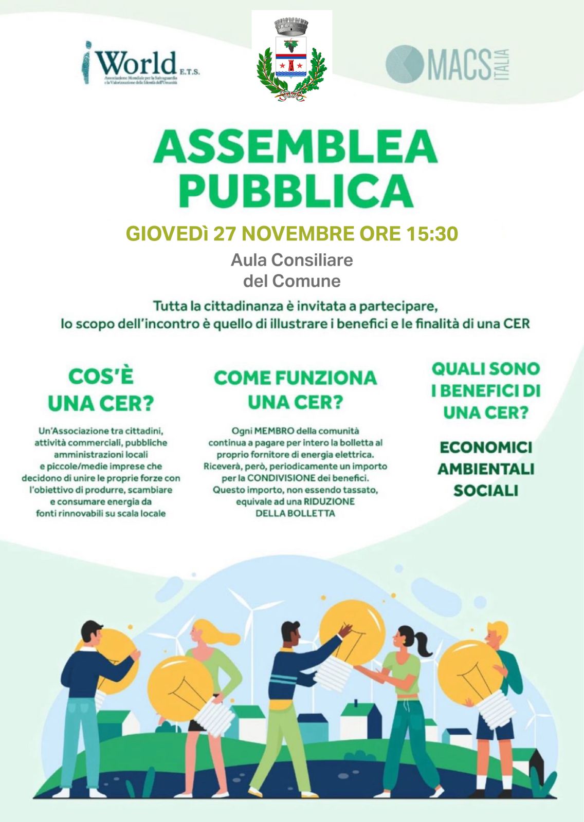 ASSEMBLEA PUBBLICA GIOVEDI' 27 NOVEMBRE ORE 15:30 COMUNITA’ ENERGETICA RINNOVABILE (CER)